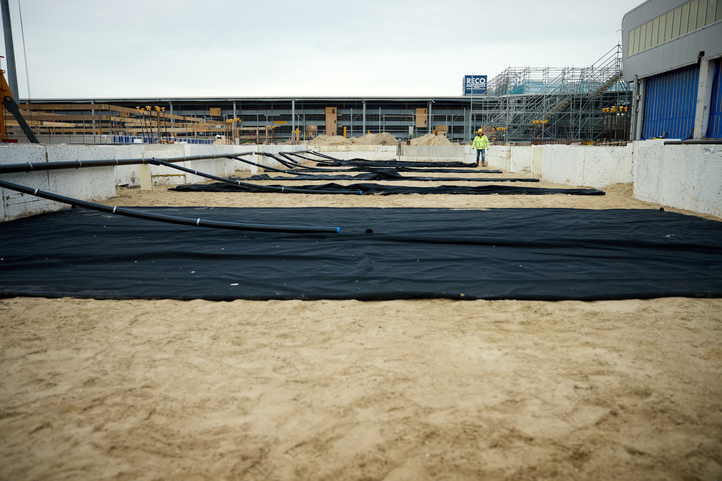 De installatie van de waterberging onder het nieuwe gedeelte van de terminal